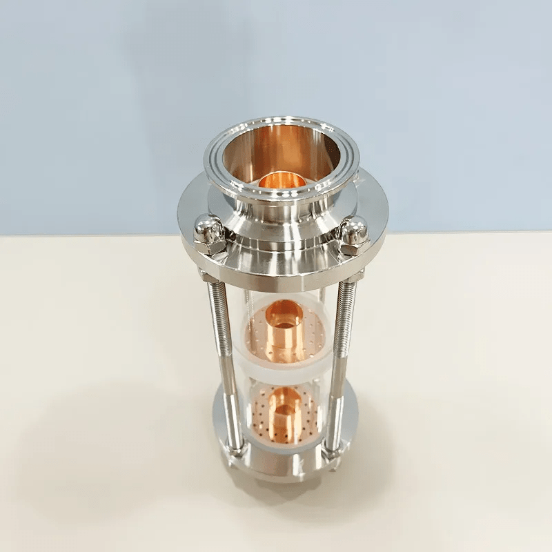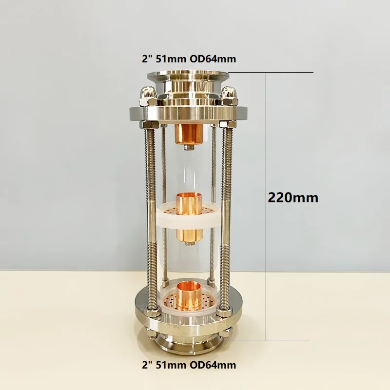 Cột chưng cất kính 3 tầng Ø2 inch (3 Floors 2″ Distillation Lens Column) là thiết bị quan trọng trong hệ thống chưng cất phân đoạn dùng để tách và tinh luyện các chất bay hơi. Thiết bị được thiết kế với ống kính borosilicate chịu nhiệt, bộ đĩa sủi bọt bằng đồng (Copper Bubble Plate Set) và kết nối Tri-Clamp bằng inox 304, giúp nâng cao hiệu suất chưng cất và cho phép người vận hành quan sát trực tiếp quá trình hoạt động bên trong cột.